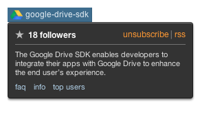 只需将鼠标悬停在 google-drive-sdk 标签上。您将看到两个选项。在电子邮件/RSS 之间进行选择。